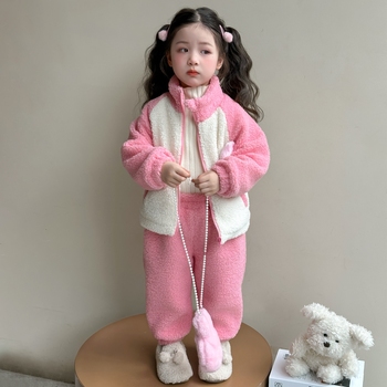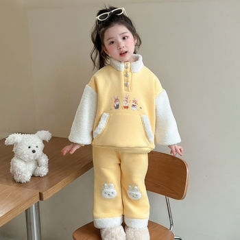2025 Mới Mô Hình Trẻ Em Của Áo Thun Hoodie Với Mui Xe, Cô Gái 'Mùa Xuân, Mùa Thu Và Mùa Đông Thiết Lập Của Hai Mảnh Của Lông Cừu Áo Len