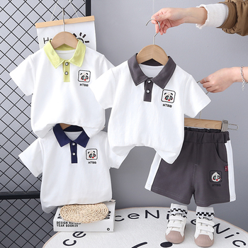 子供服2025年夏新スタイル0-4歳男の子と女の子ハーフジッパーラペル半袖2点セット